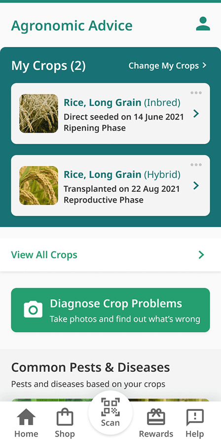 Design Changes: A quick-entry feature for crop help and product recommendations.