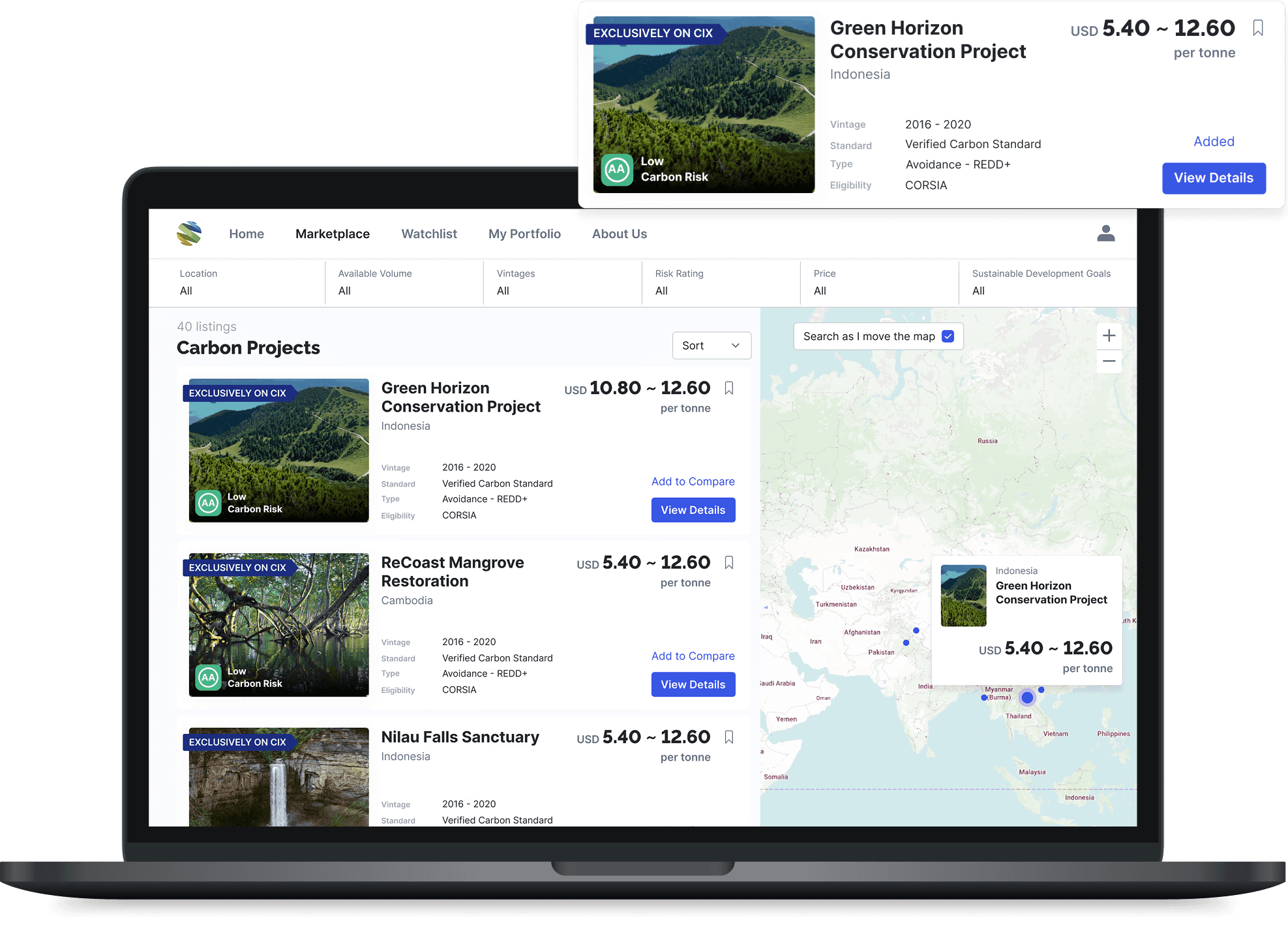 Design Changes: Integrated Sylvera ratings and surfaced verification data. Buyers generally trust the projects that CIX have put together even though they may not understand the technicalities.