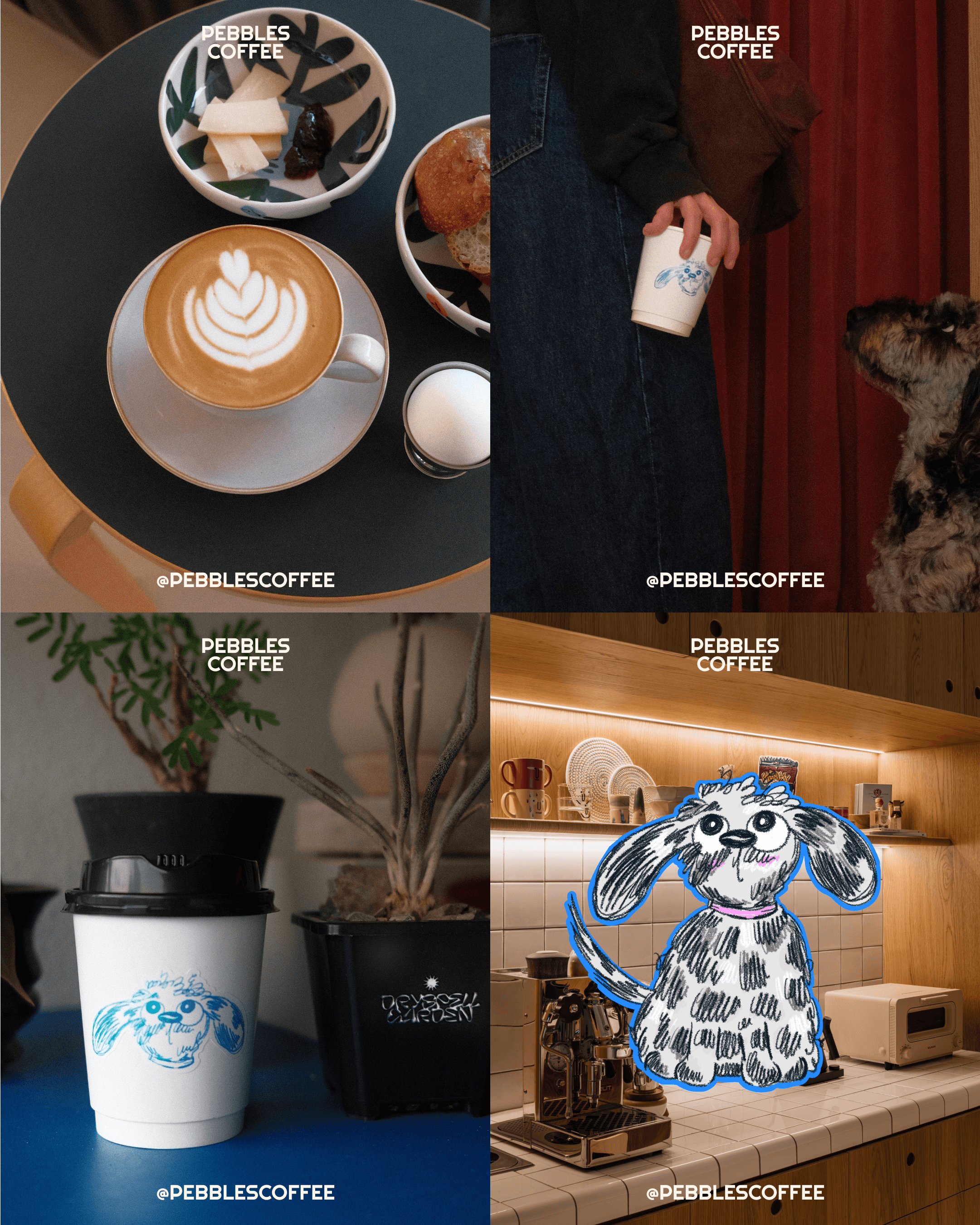 Pebbles Coffee grew out of that 100 leftover cups. A little side hustle to meet like-minded people who love coffee and dogs. With no grand ambitions, just an excuse to have fun and be a little creative - from doing everything from brand design, social media management to recipe R&D for the menu.